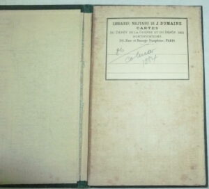 Carte N°86. Mirecourt (Strasbourg). Levée par les Officiers du Corps d’état-major, et publiée par le Dépôt de la Guerre en 1884 .Échelle métrique 1/80,000 – Échelles en Lieues – Échelles en Toises. Gravée: le trait par Bonnet, la lettre par Hacq, le figuré du terrain par Blacher, les eaux par Rouillard. Imprimée au Dépôt de la Guerre. Carte. Carte dépliante entoilée. Bon état. Carte pliée, couverture rigide d’une couleur verte : Format in-8°