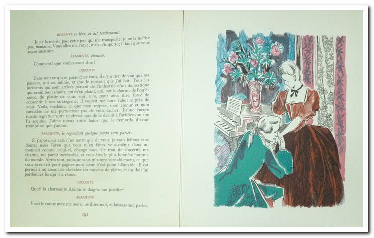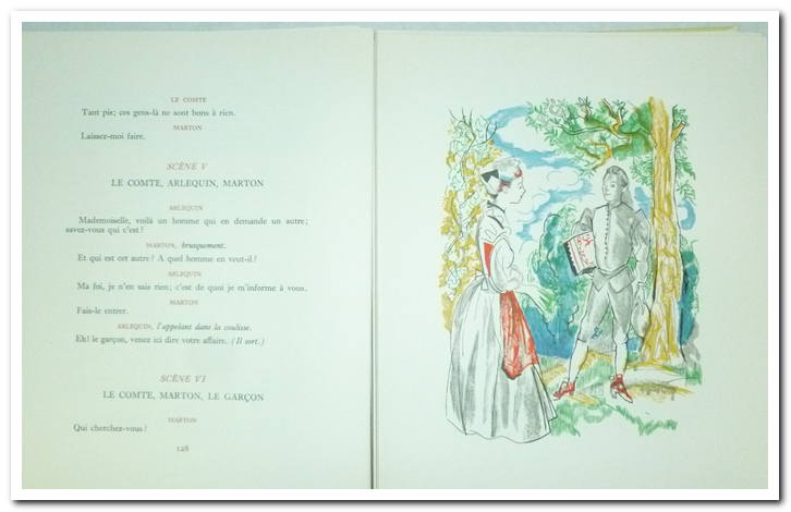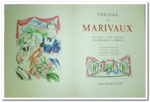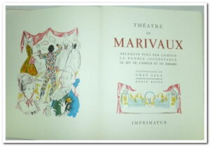 Livre, 2 Vol. In-8. Illustrations de Grau Sala gravées sur bois en couleurs par Roger Boyer. Répartis comme suit : Tome I ( ArlequIn-poli par l’amour, La double Inconstance, Le jeu de l’amour et du hasard), Tome II ( Le Legs, Les Fausses Confidences, l’Épreuve) En feuilles, chemises et étuis feutrés bleus. État bien conservé et intérieur très propre, couverture rigide en coffret.