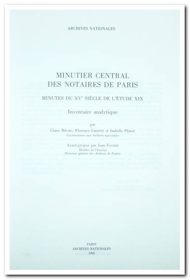 Minutier central des notaires de paris minutes du XVe siècle de l’étude XIX Broché, très bon état, couverture rigide et propre et intérieur frais et propre, inventaire analytique des archives nationales, édition originale.