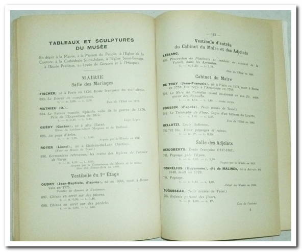 Musée du Mans (Hôtel de Tessé) Catalogue du Musée des Arts. Arsène Le Feuvre Arsène Alexandre, Art. Peinture. Sculpture. Dessins. Gravures. Objets d’Art. XIV. 133 pages. Broché. Couverture souple, intérieur frais et propre, bon état. in-8°.
