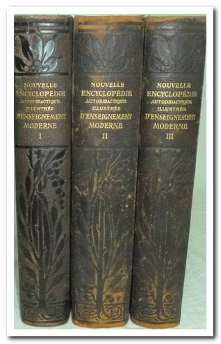 In-4. Relié, Français, présentation nouvelle encyclopédie autodidactique illustrée d’enseignement moderne en 3 vol, Couverture rigide. Trois anciens volumes de plus de cent ans, qui réservent bien des surprises par la richesse de leurs contenus ; toutes les matières de l’enseignement de l’époque y sont présentes, avec de nombreuses illustrations, gravures, et planches dépliables. Etat : bon, intérieur propre et frais.