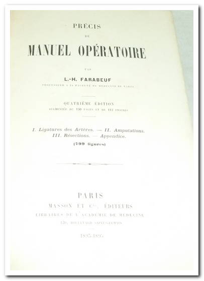 L. H. Farabeuf L. H. Farabeuf. Précis de manuel opératoire, Couverture rigide, un manuel écrit en français en 1032 pages, intérieur très propre et très frais, très bon état, plusieurs illustrations en noir dans et hors texte. Manuel opératoire du début du XXe siècle.