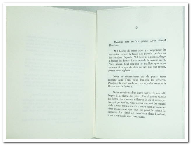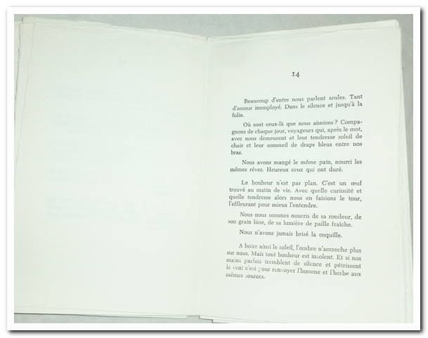 In-8 en feuilles, couverture sous étui, ornée d’une sculpture de bois réalisée par Jean-Paul DOMERGUE, sculpteur, et poncée par Pierre Jean Flachaire, menuisier et poète en Avignon. 23 pages, très bon état, intérieur frais et très propre.