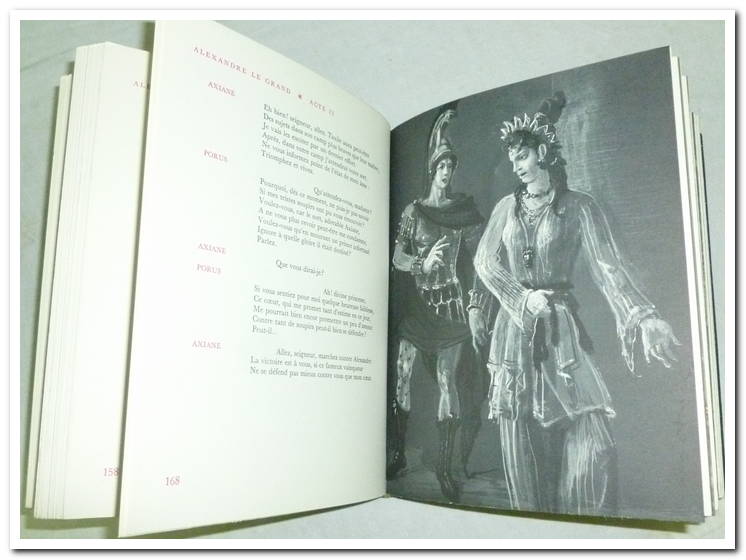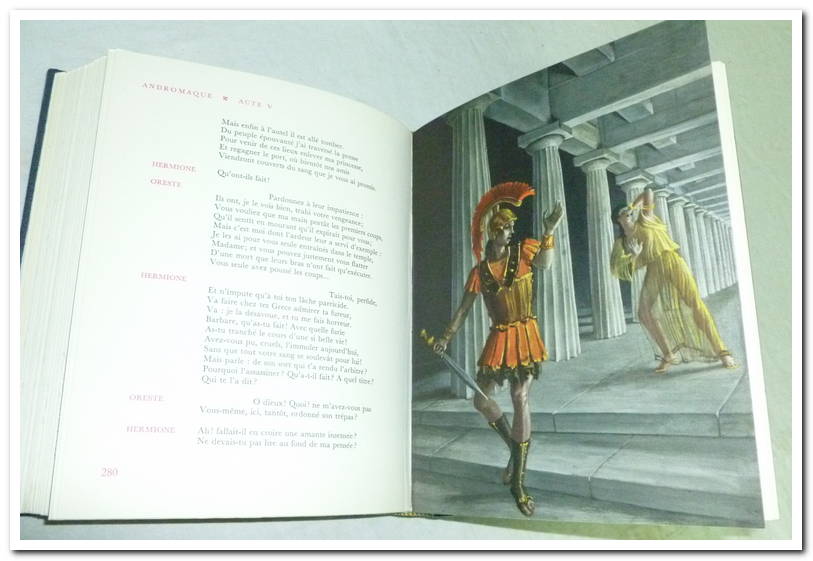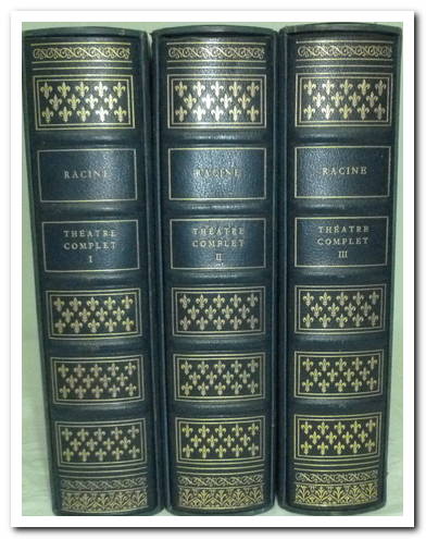 3 importants volumes in-8 reliure éditeur sous emboitage. 357, 351 et 356 pages. Tome 1 : textes de Jean Giraudoux, Jacques de Lacretelle et Jean-Louis Barrault, La thébaïde, Alexandre, Andromaque, Les plaideurs , tome 2 : textes de Jean Giraudoux, Jean-Louis Barrault, Jacques de Lcretelle. Britannicus, Bérénice, Bajazet, Mithridate, tome 3 : Iphigénie, Phèdre, Esther, Athalie. Intérieur très frais et propre, couverture rigide, dos à 5 nerfs, tranche en tête dorée – nombreuses illustrations en couleurs hors texte dont le frontispice, très bon état. Un exemplaire N° 671 sur le tome3